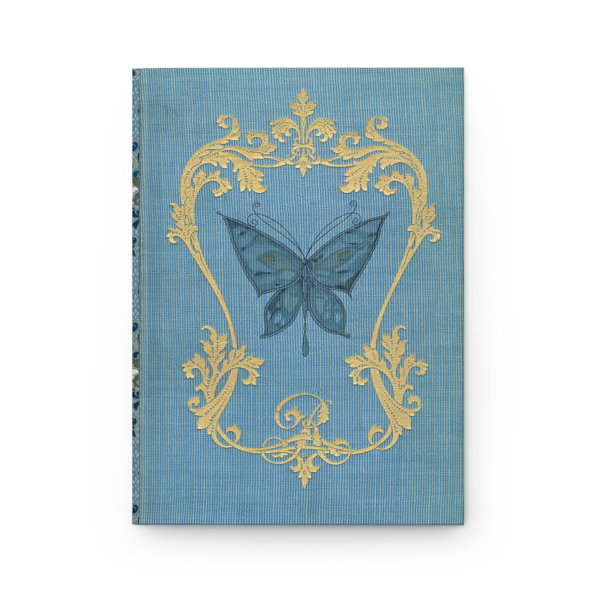 Make your everyday journaling and note-taking more personal, private, and stylish with this matte hardcover journal. Available in 5.75"x8", with 150 lined pages, this sturdy lined hardcover journal in a romantic blue and gold Regency design with a butterfly motif makes a great gift or composition notebook.