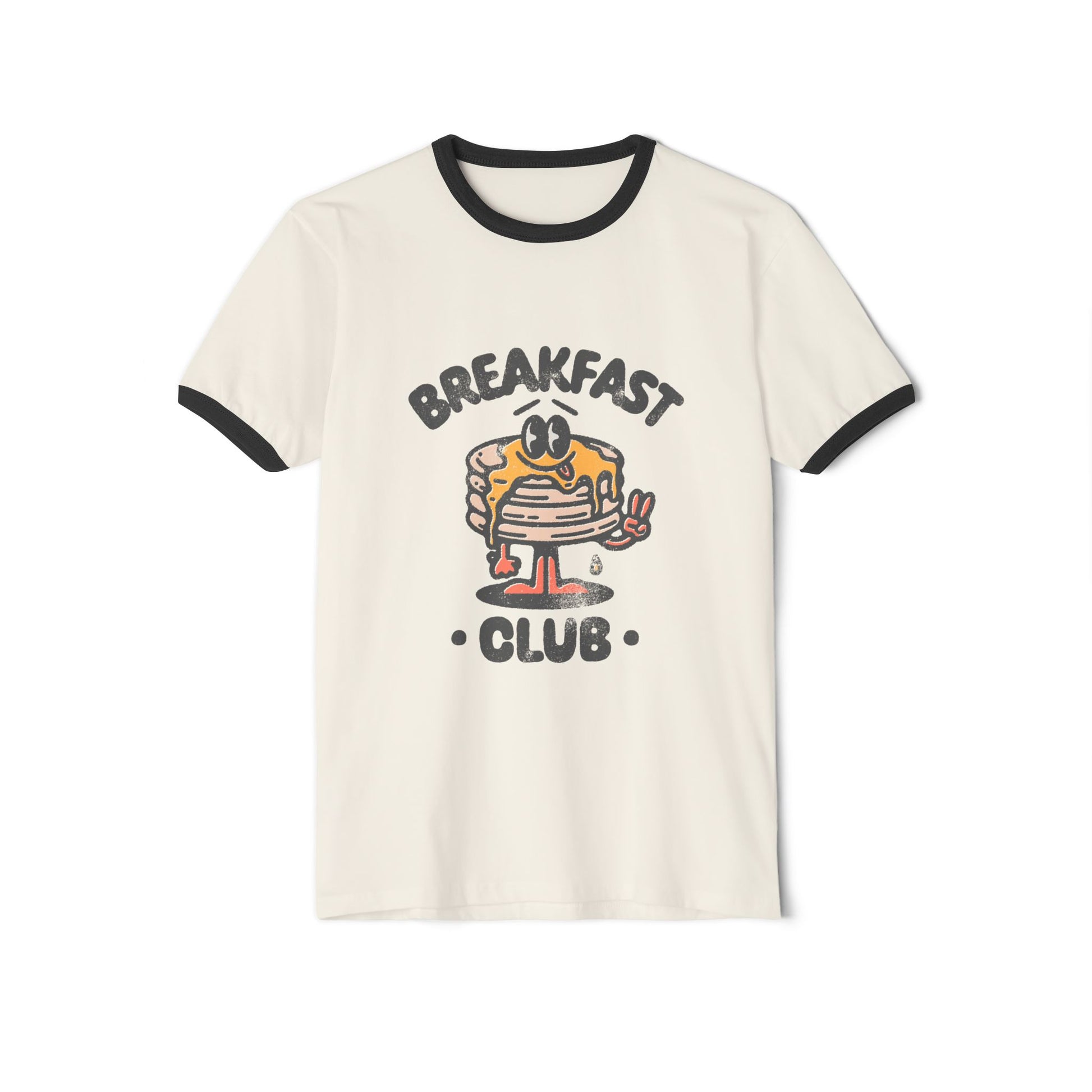 Retro 80s Scratch ‘n Sniff Pancake Sticker Unisex Ringer Tee, Vintage Style Soft Cotton T-Shirt. This T-Shirt gives off a nostalgic and fun vibe, perfect for those who love vintage styles. It can be a great addition to a casual outfit for a laid-back day or a fun-themed event. Ideal for pancake lovers, 80s enthusiasts, and those who appreciate unique designs.