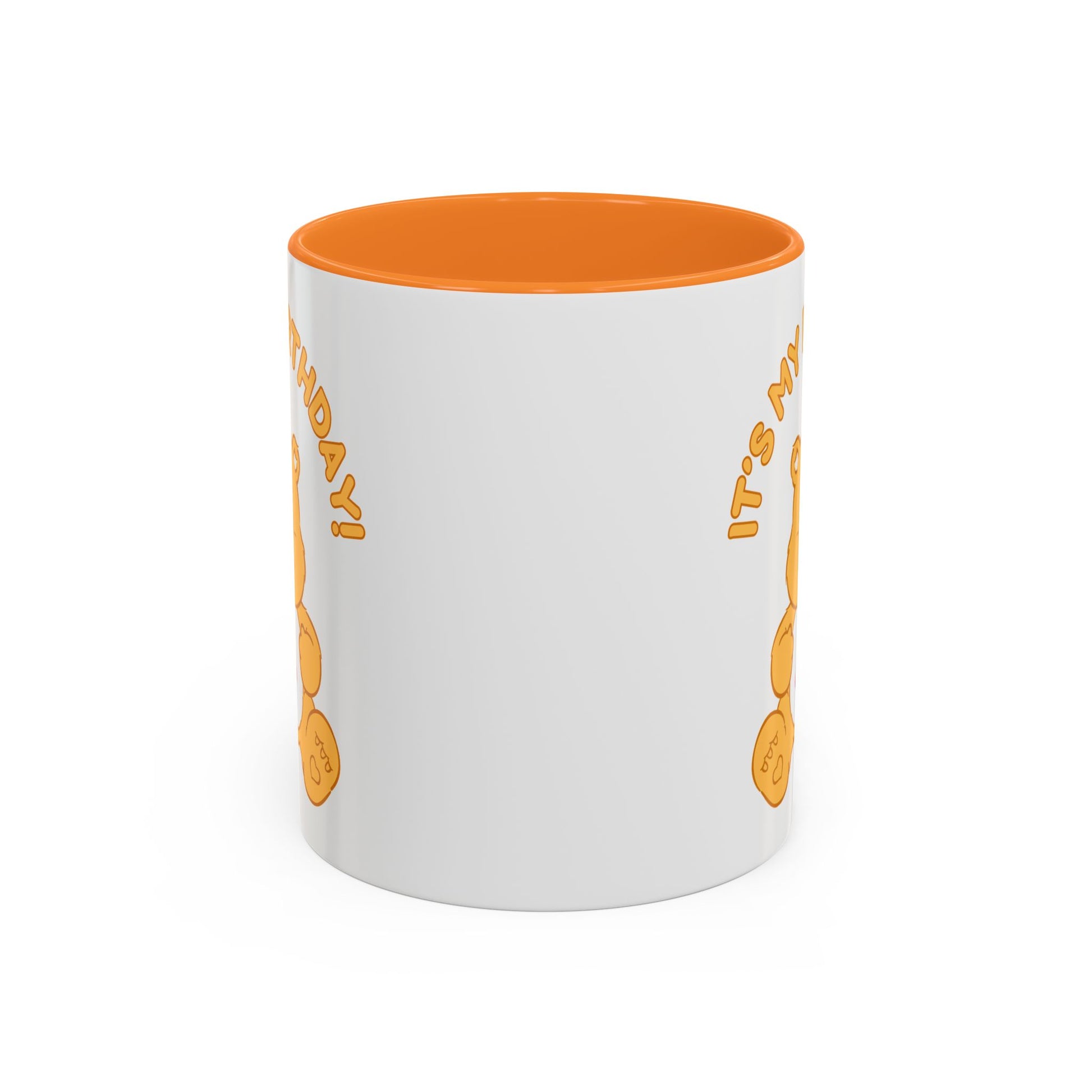 This glossy ceramic mug brings playful birthday cheer to morning routines. The wraparound design features a sweet, retro-style bear holding a cupcake with the phrase "It's my birthday!" in bubbly lettering. Bright orange accent (handle and interior) makes the artwork pop and adds a sunny touch to coffee or cocoa. The easy-grip C-shaped handle and two size options mean you can sip a short espresso or a longer latte while keeping a smile on your face. Dishwasher- and microwave-safe with a durable ORCA glossy coating, this mug brightens celebrations — whether it’s a small solo ritual or a cozy gathering marking another year.
