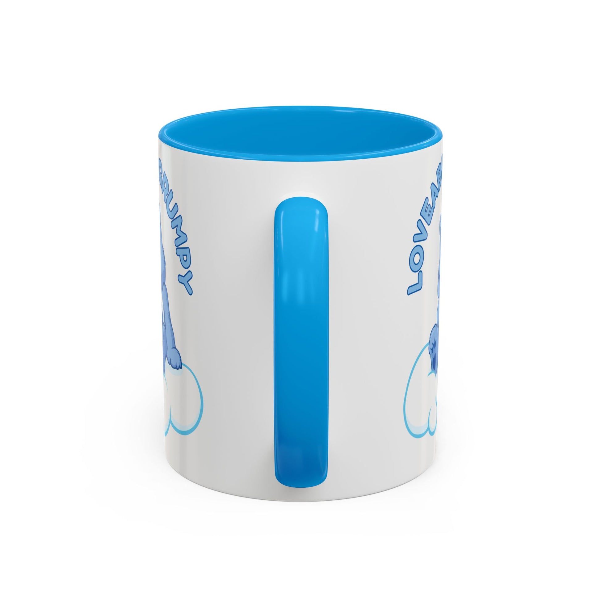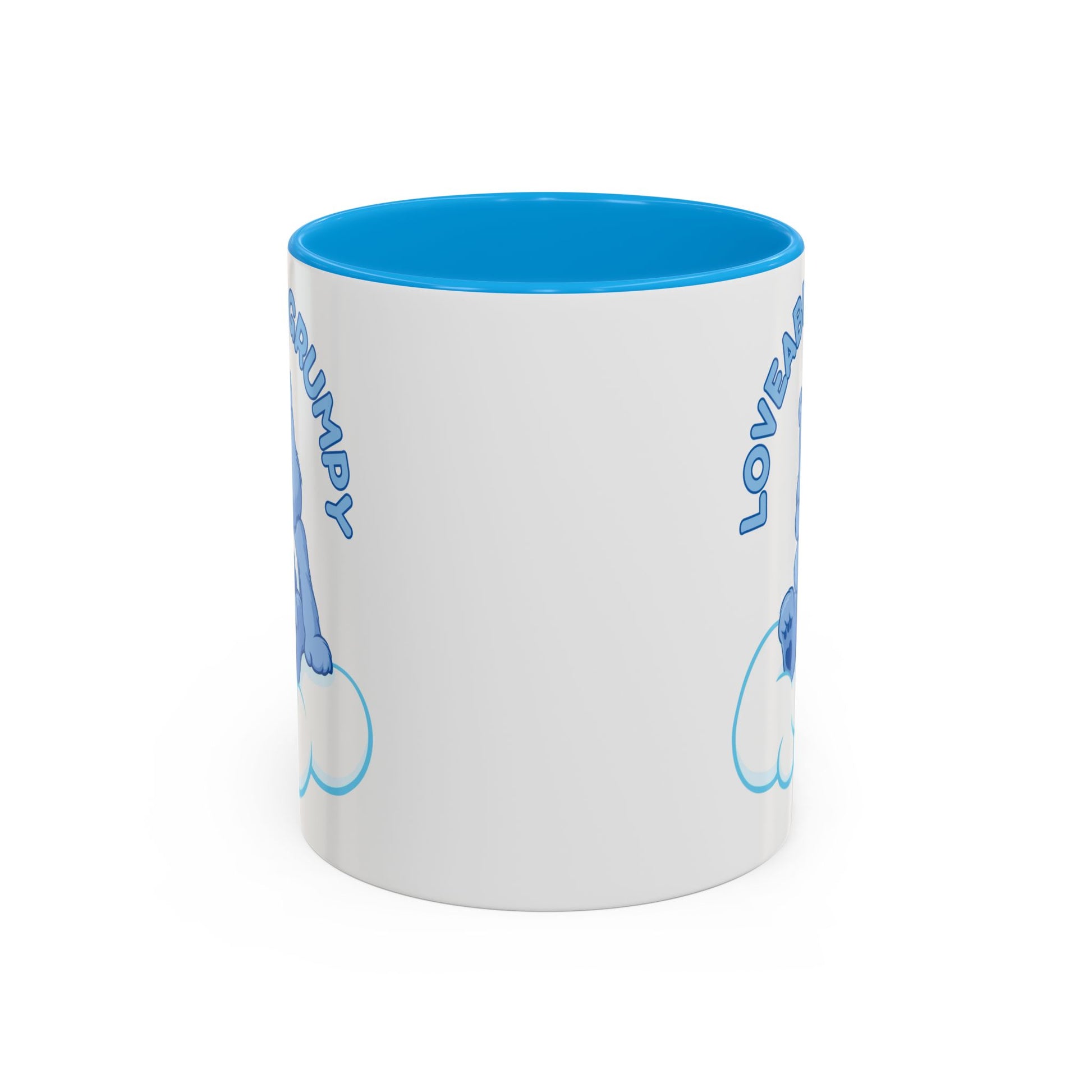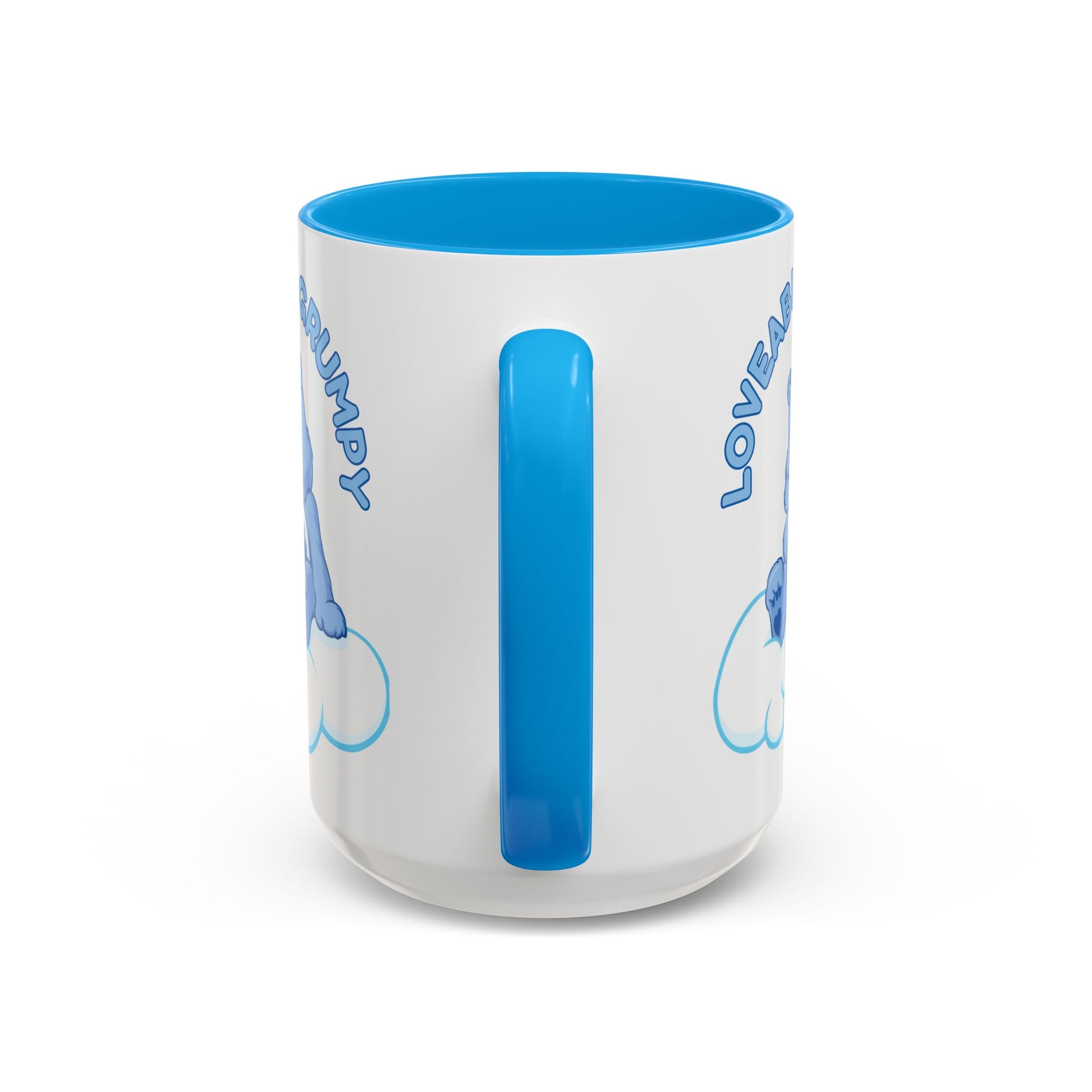 This glossy ceramic mug brings a little grumpy charm to everyday coffee and tea rituals. A sleepy blue bear perches on a soft cloud beneath the hand-lettered phrase “Loveably Grumpy,” turning a morning scowl into something warm and oddly comforting. The colorful interior and handle add a playful pop that lifts the design — it’s the kind of mug you reach for when you need a quiet, familiar companion on slow mornings, late-night reading, or cozy weekend stretches. Built for daily use, it feels sturdy in the hand and keeps the illustration bright wash after wash.