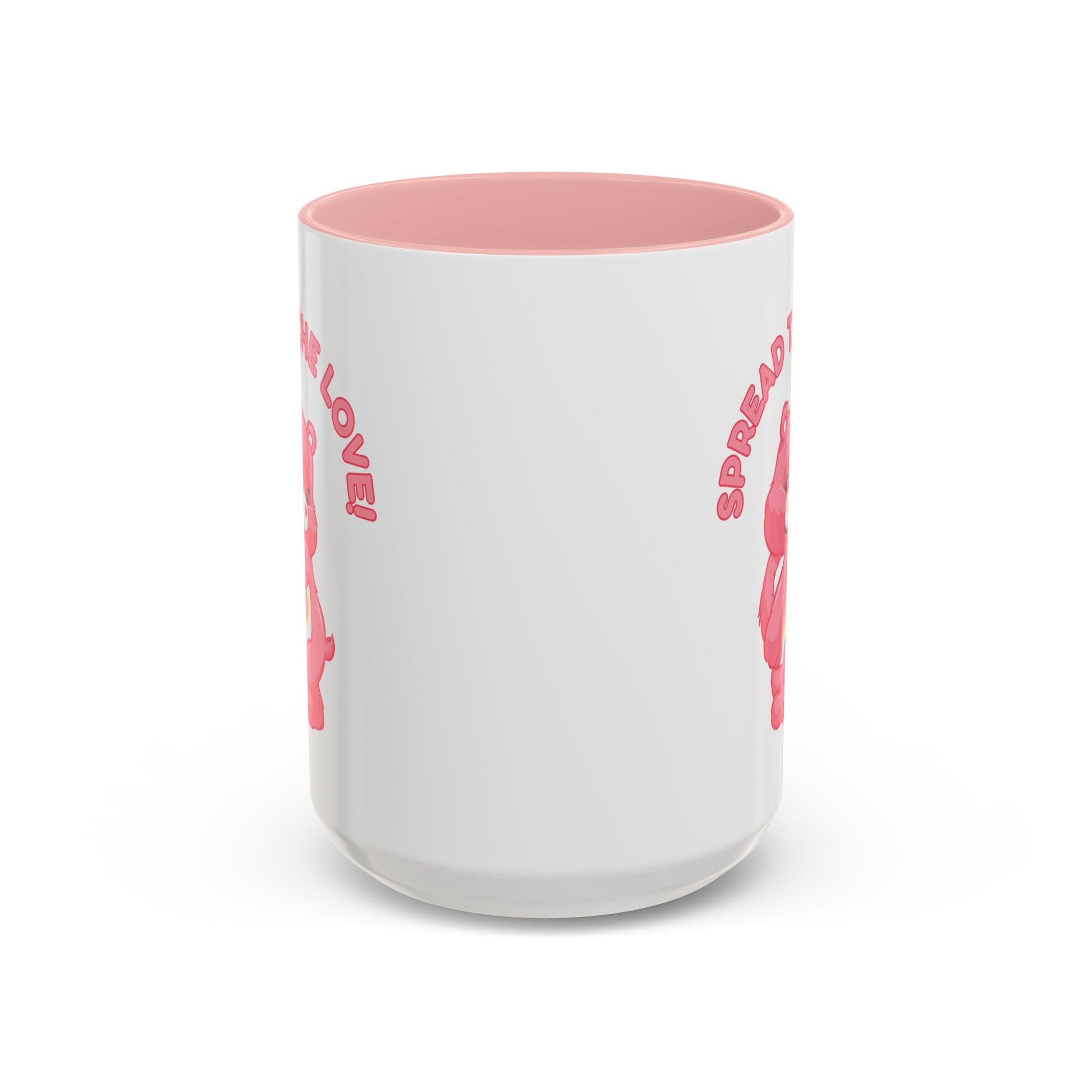 Warmth in your hands and a smile in your morning routine. This ceramic mug pairs a glossy white exterior with a soft pink interior and handle, featuring a cheerful pink bear holding a heart and the uplifting phrase “Spread the Love.” The compact C-shaped handle feels comfortable for everyday sipping, while the vibrant print resists fading so the artwork stays bright through many washes. Choose between 11oz and 15oz sizes to match your coffee or tea habit — the color-contrasting rim and handle add a playful, nostalgic touch to your kitchen or desk. Microwave- and dishwasher-safe, lead- and BPA-free, this mug blends practical durability with a sweet, feel-good design that fits cozy mornings and thoughtful moments.