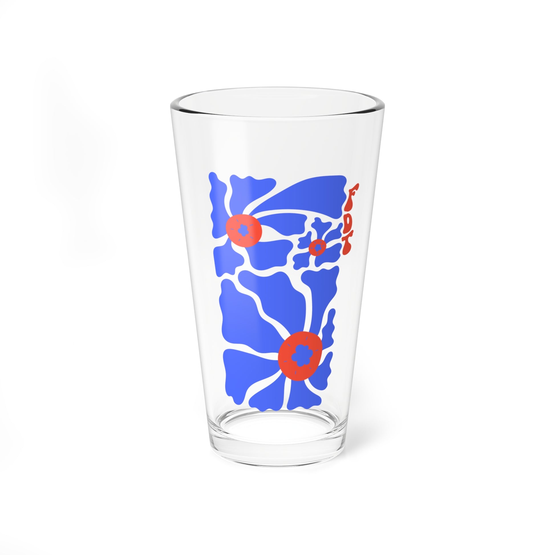 ‘FDT’ Red & Blue Floral Pint Glass