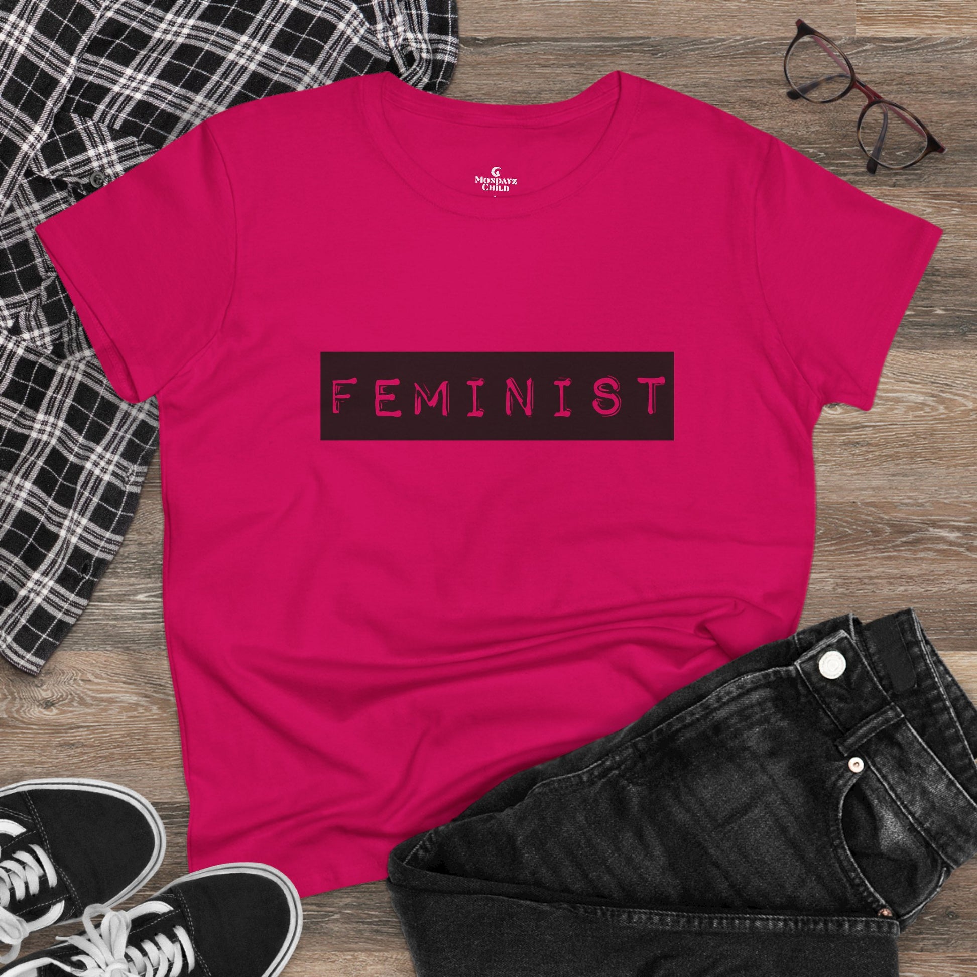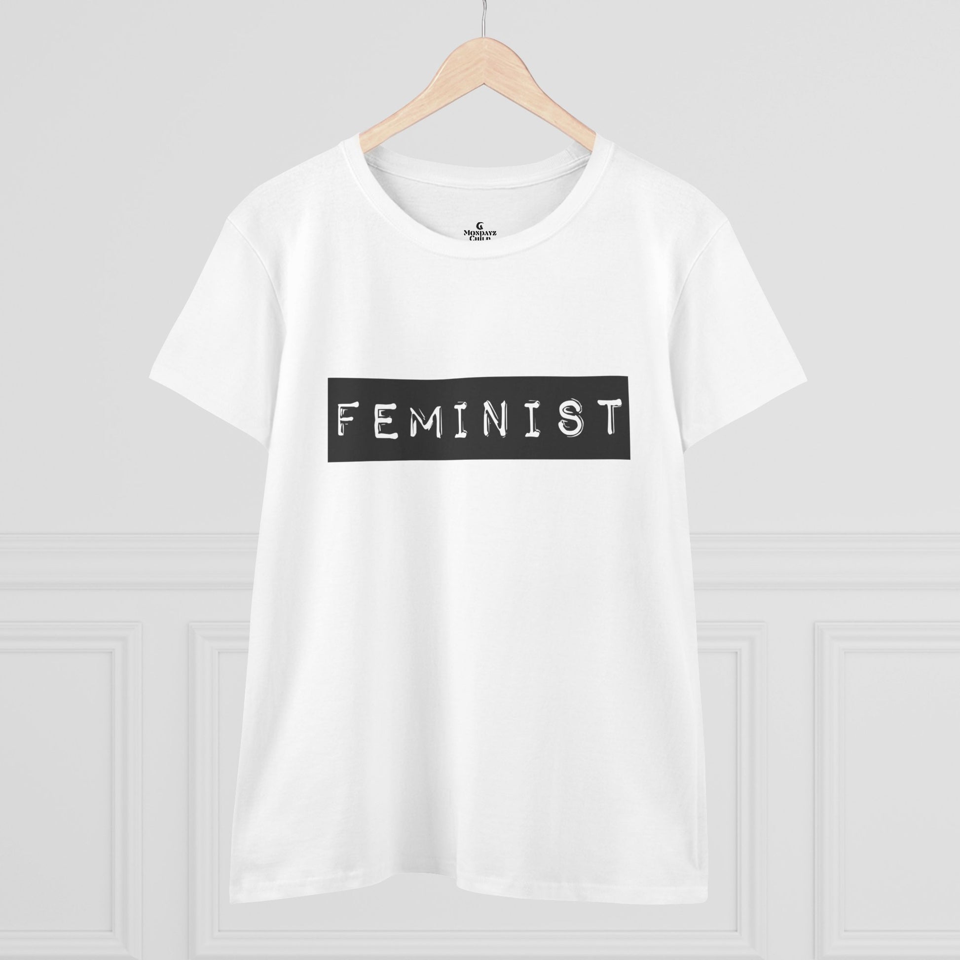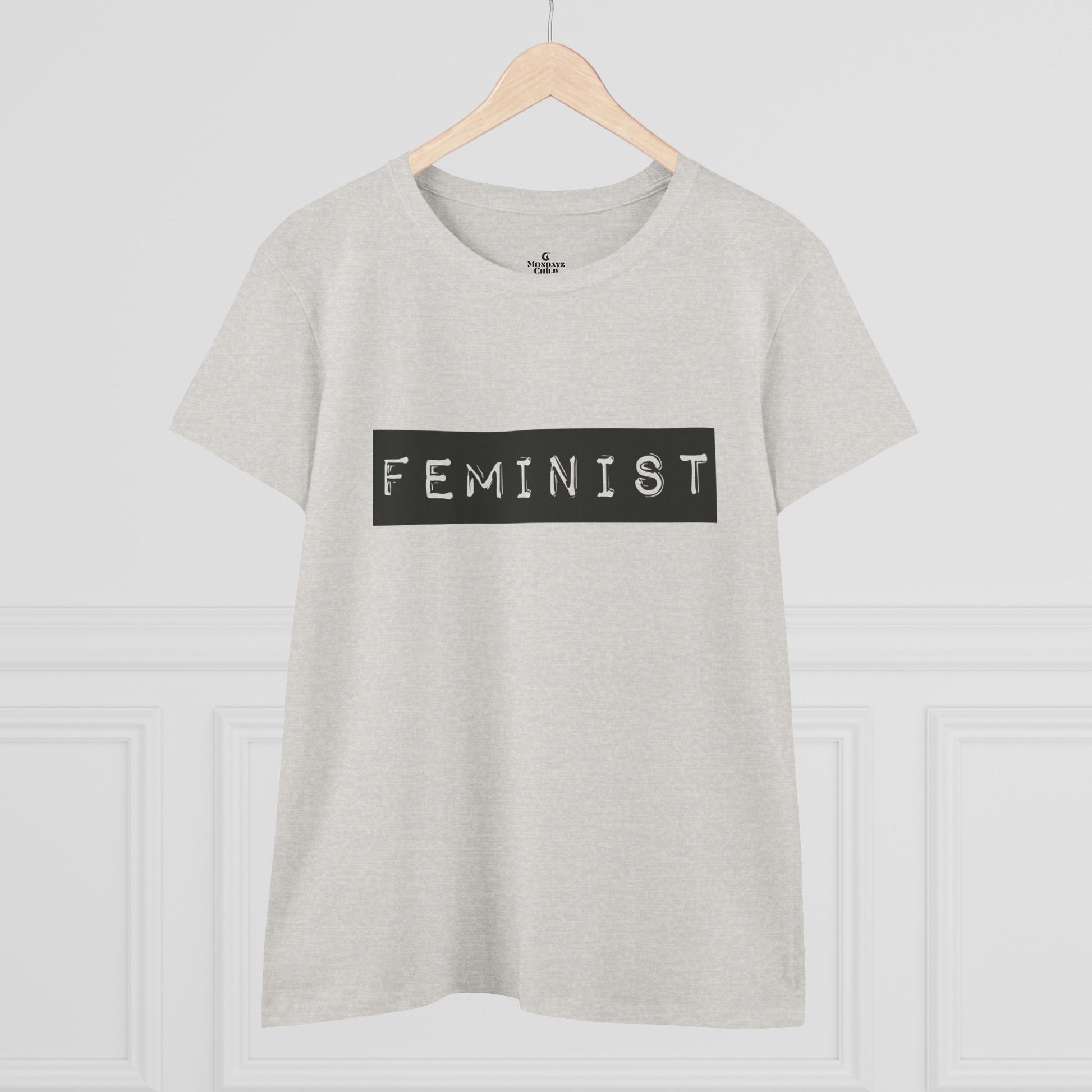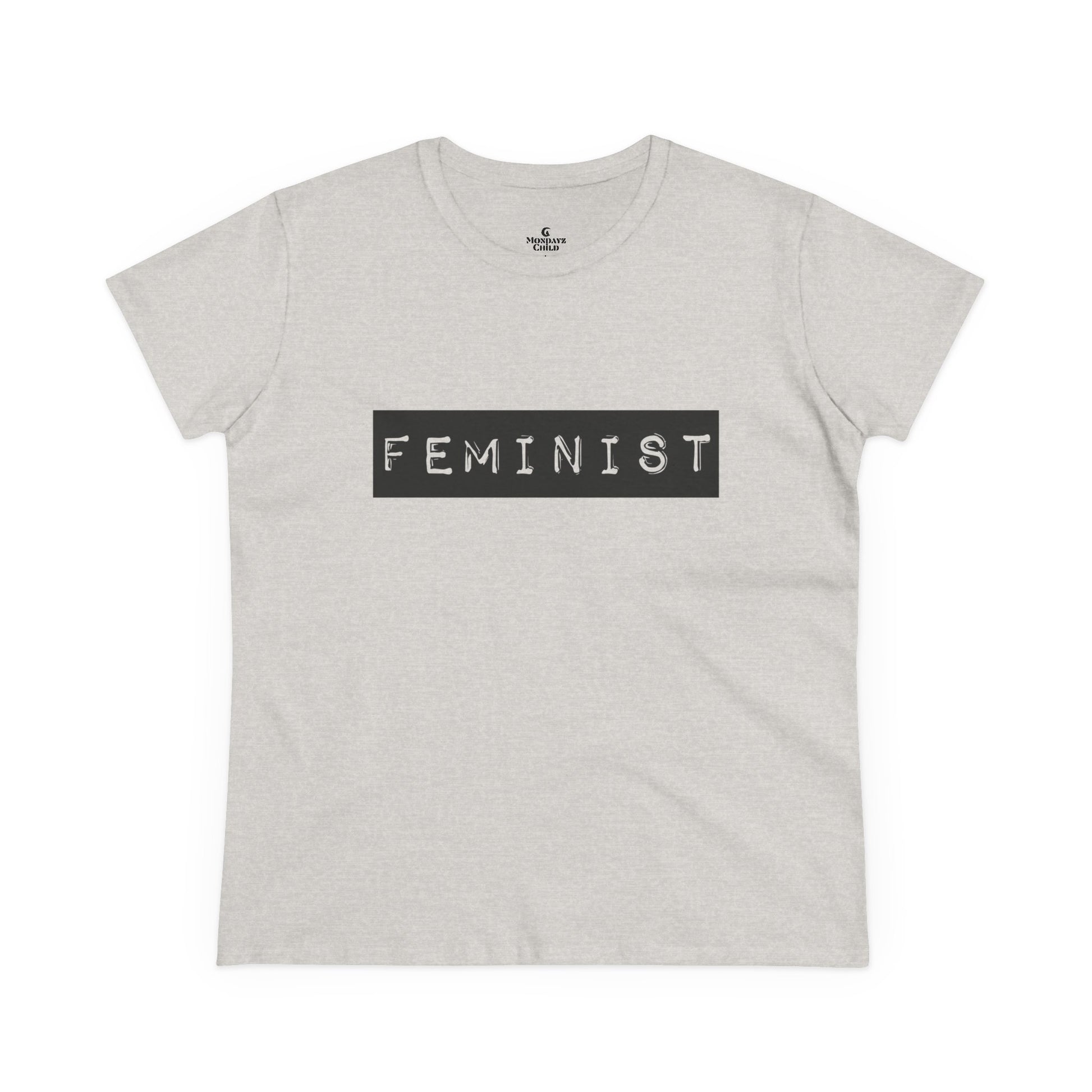 Modern, Industrial-Style “Feminist” Woman’s T-Shirt, perfect for Female Empowerment and everyday wear. Ideal for the Women’s March and supporters of gender equality.