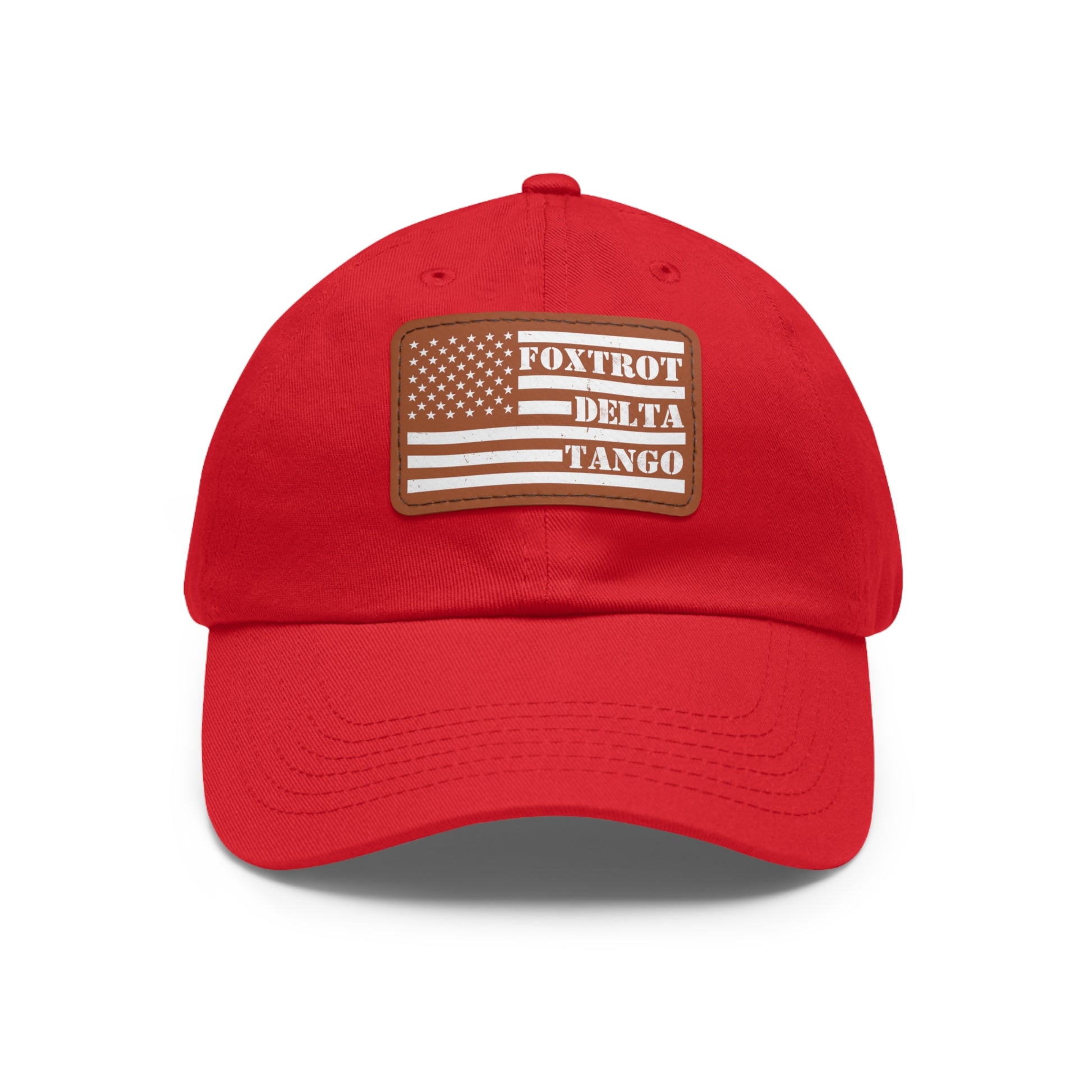 “Foxtrot Delta Tango”, Subversive Anti-Trump Messaging Baseball Cap with Faux Leather Patch. This dad hat exudes a rebellious and edgy vibe, perfect for individuals who enjoy making a statement with their fashion choices. Ideal for those who support anti-Trump messaging and want to showcase their beliefs. Relevant for political protests, rallies, and marches.