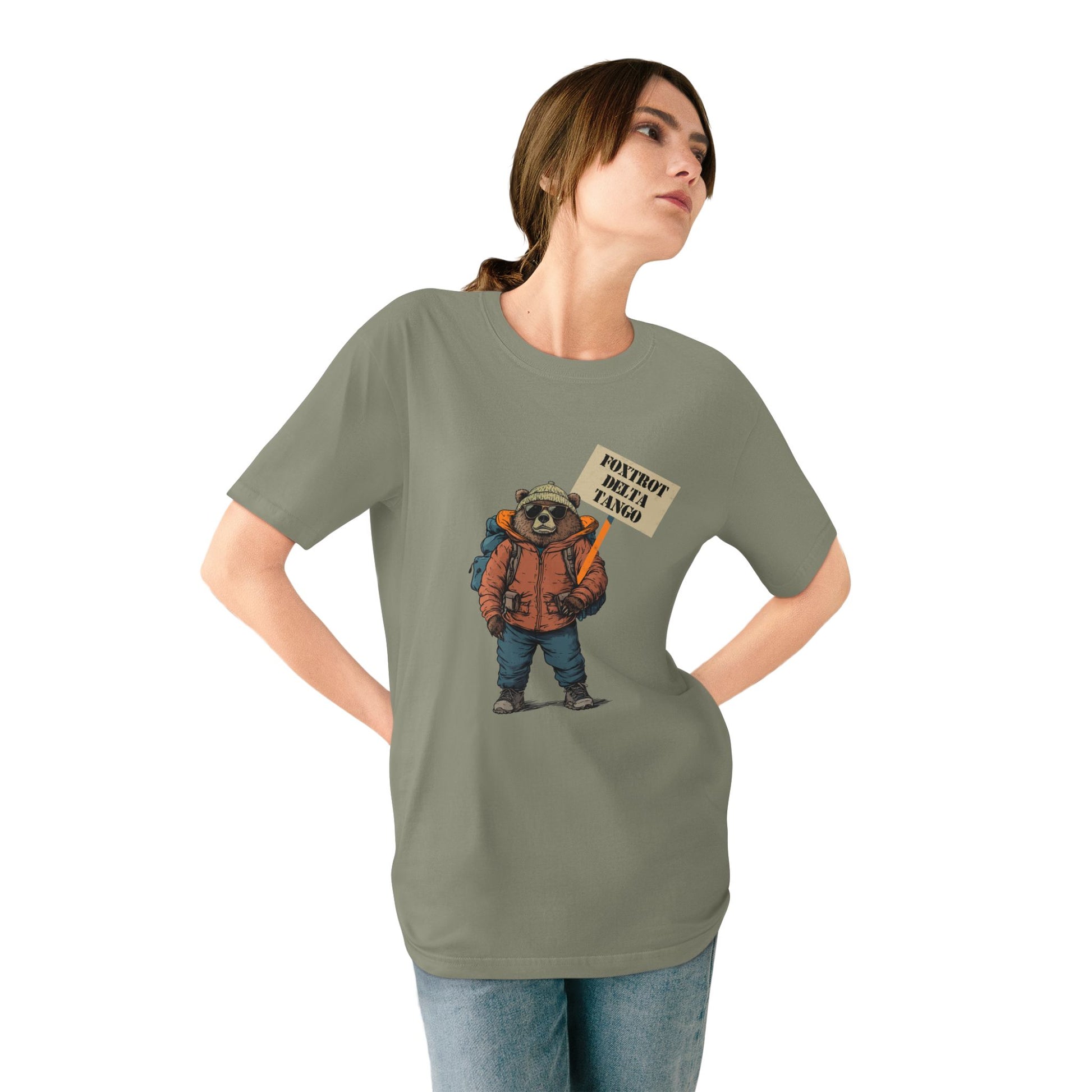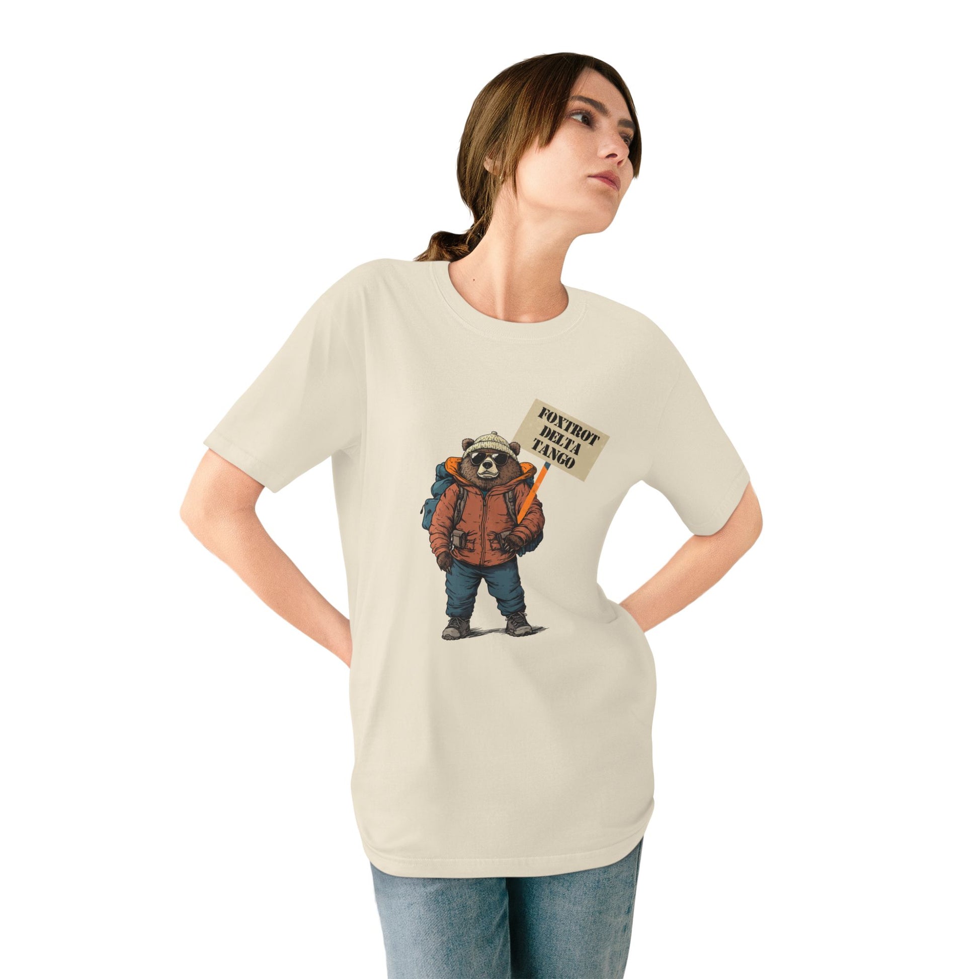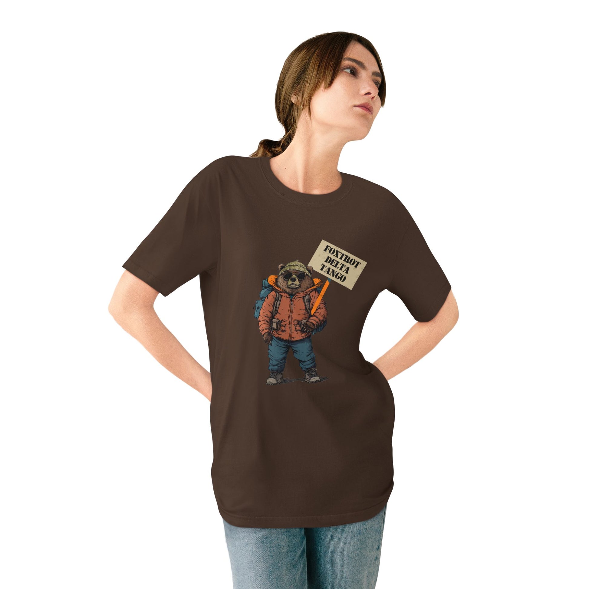 FOXTROT DELTA TANGO Anti Trump Eco-Friendly Unisex Graphic Tee with a message of supporting National Parks and wildlife. A perfect way to protest and show resistance. This T-shirt is warm, flexible, and made of 100% organic combed cotton, making it comfortable and durable for everyday wear. Ideal for those passionate about environmental conservation and wildlife protection. Relevant for Earth Day, National Parks Week, and environmental protests.