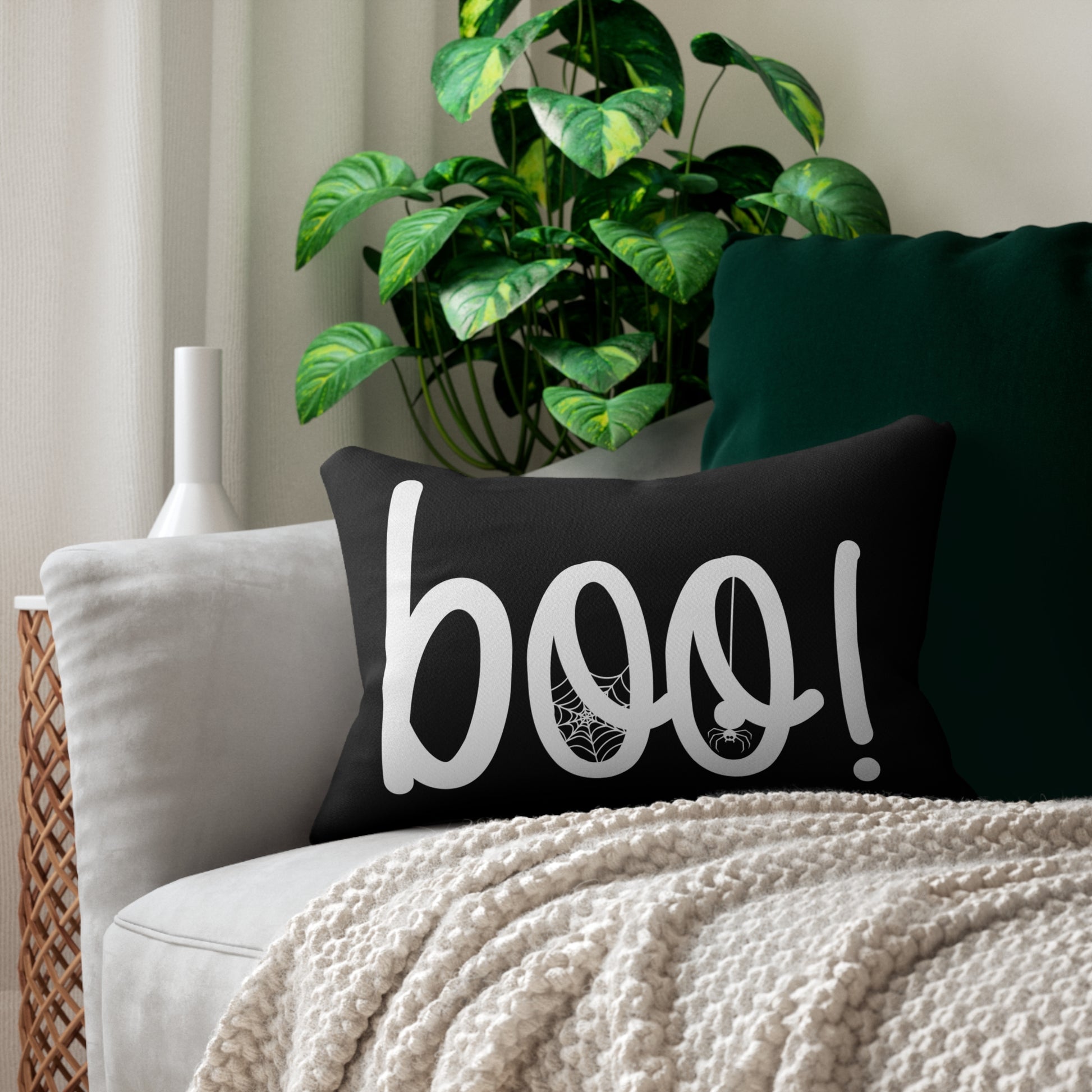 Add a touch of seasonal charm to your home with this cozy lumbar pillow. Featuring a playful 'boo!' design, it's perfect for celebrating Halloween and creating a festive atmosphere. This versatile pillow fits seamlessly into any living space, making it an easy way to express your love for the spooky season. Ideal for families, party hosts, or anyone looking to enhance their fall decor, this pillow sets a cheerful, welcoming vibe. Whether you're decorating for Halloween bash or snuggling on the couch for a movie night, this piece adds just the right flair to your celebrations.