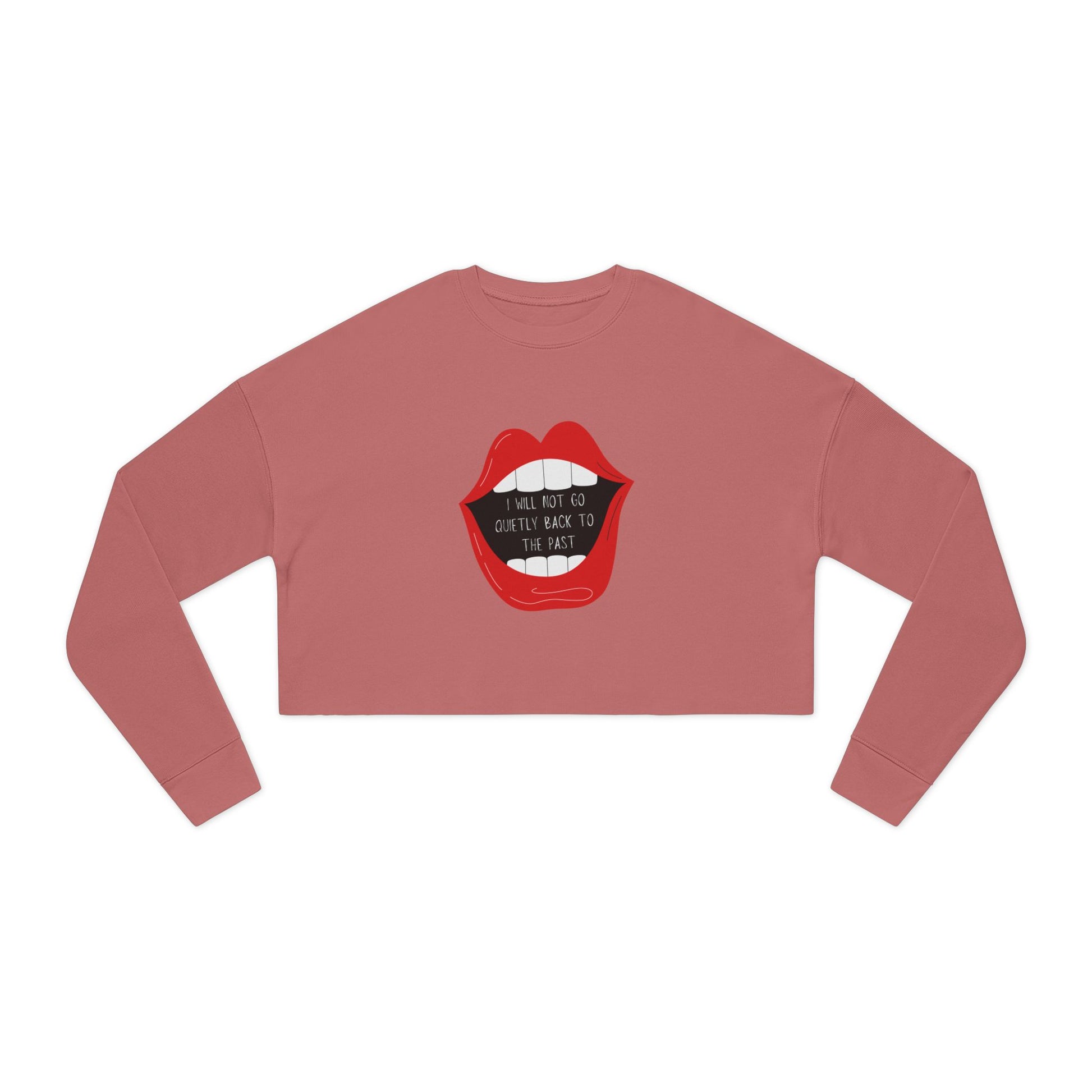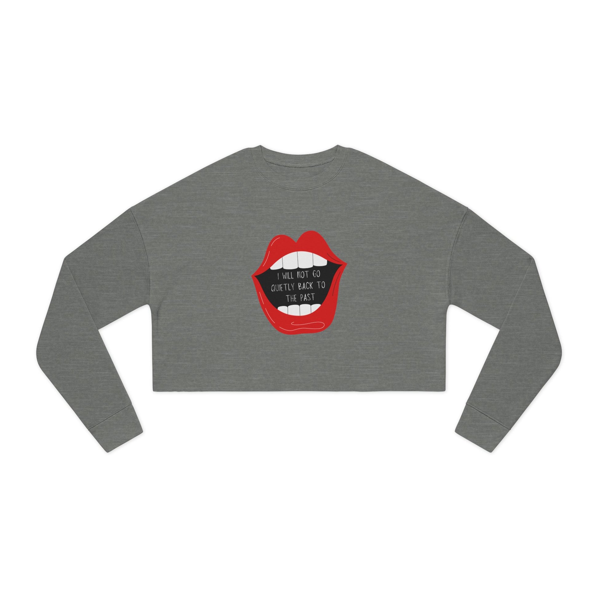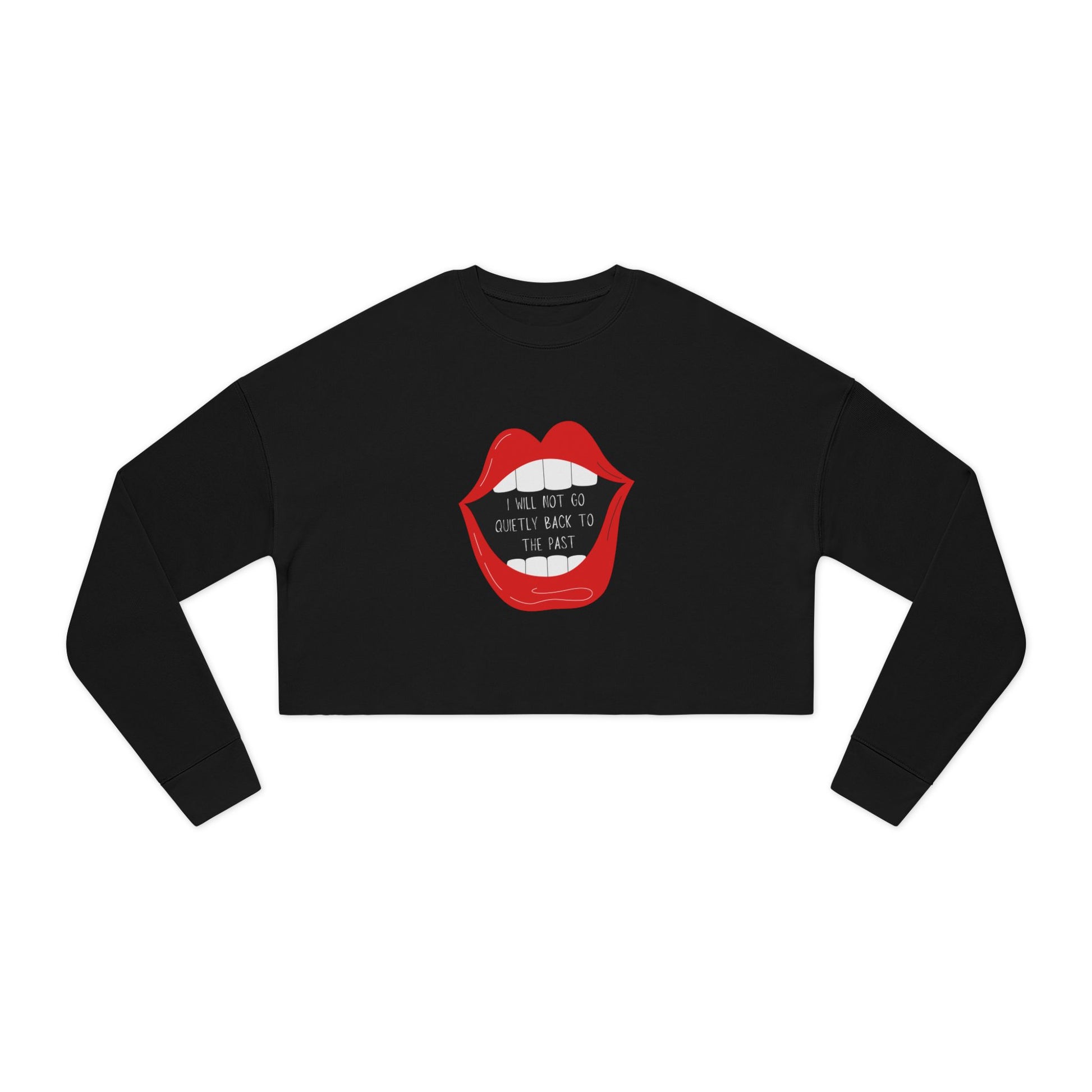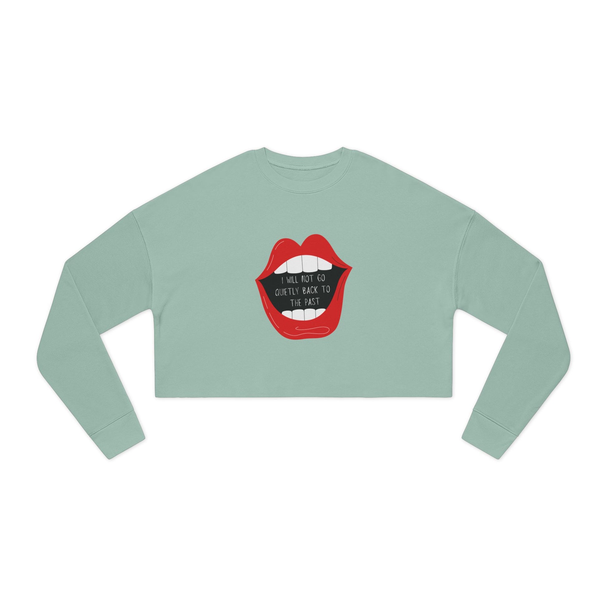Empowerment and feminist-inspired Women's Cropped Sweatshirt with a bold statement 'I Will Not Go Quietly Back to the Past'. Perfect for liberal women who support equality and pro-choice movement. Ideal for casual wear or as a statement piece during protests, rallies, or feminist events.