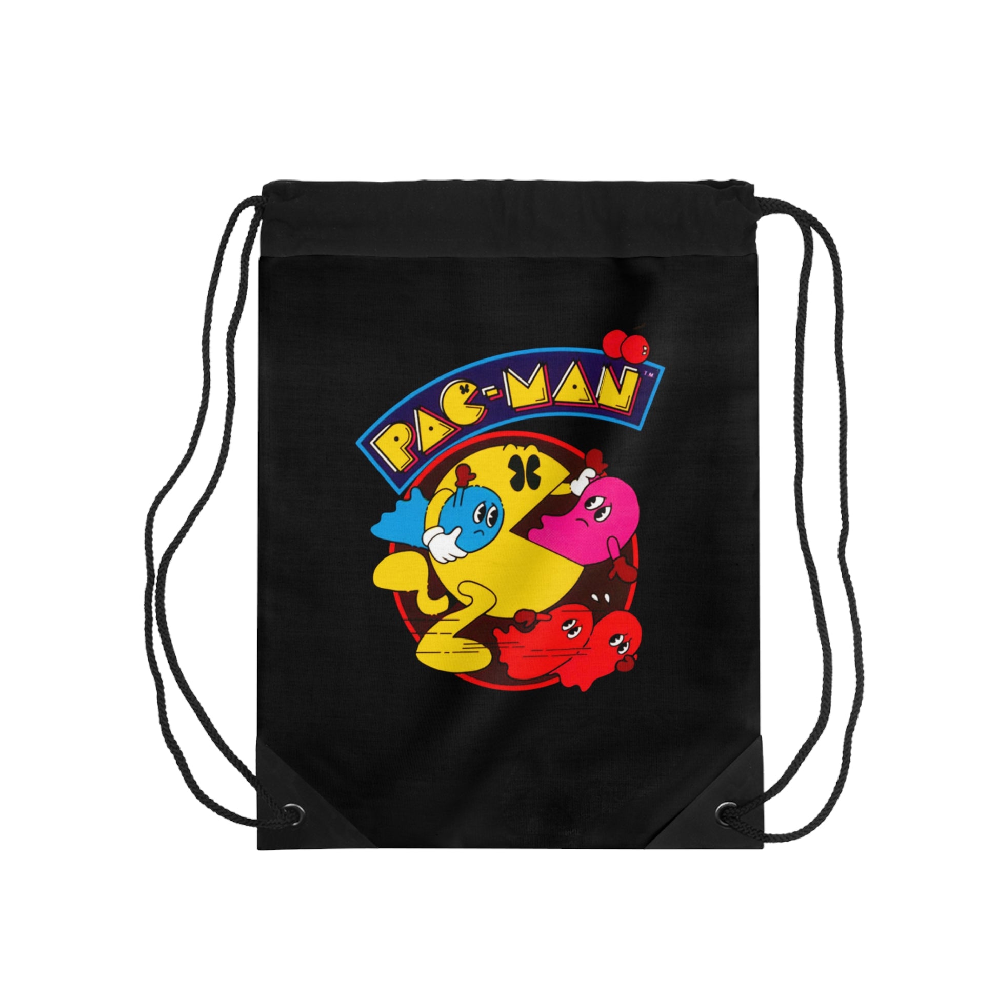 Introducing our stylish Drawstring Bag, perfect for adding a touch of fun to your daily outings! The vibrant design features a nostalgic Pac-Man theme, evoking feelings of joy and playfulness. Whether you're heading to the gym, class, or a casual day out, this bag easily fits into your life as a convenient carry-all. It's ideal for gamers and fans of retro arcade culture. This bag makes a fantastic gift for birthdays, holidays, or as a fun surprise for any occasion. Take a piece of your childhood with you wherever you go!