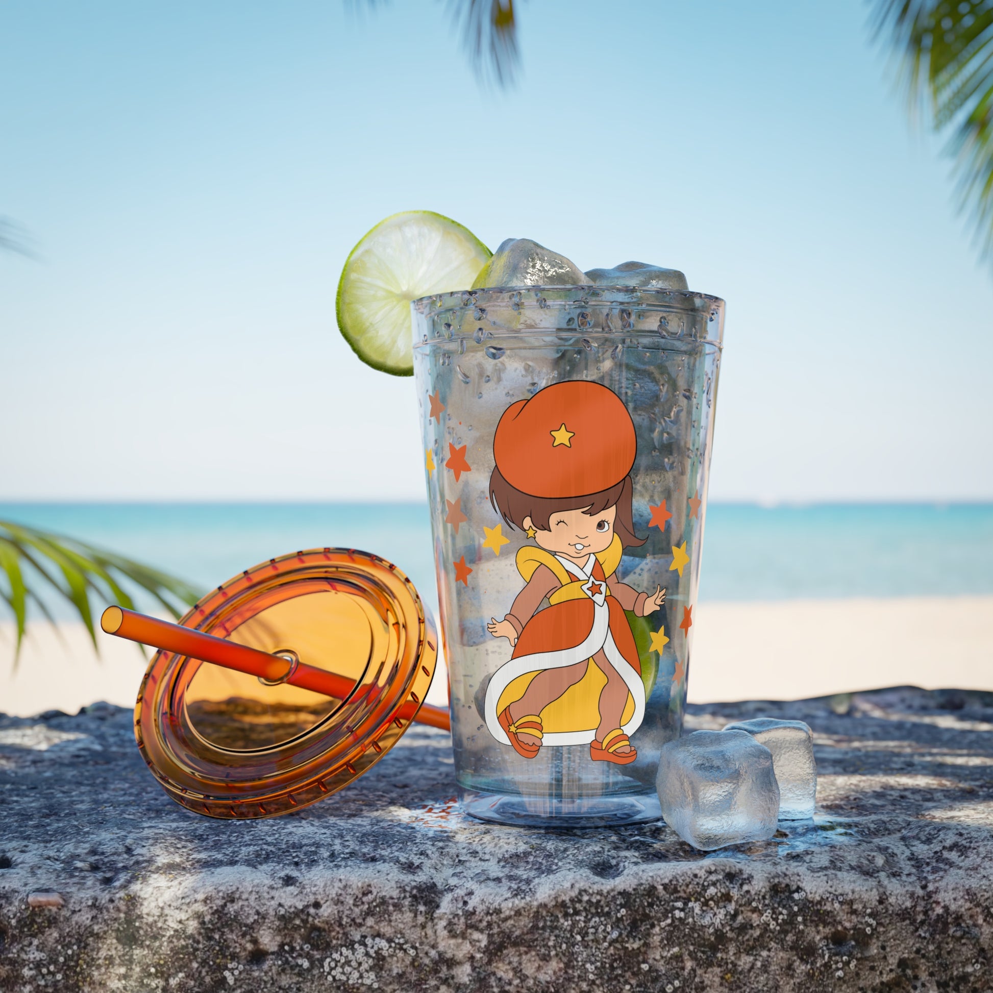 Vibrant LaLa Orange Rainbow Brite Acrylic Tumbler, perfect for fans of 1980s Retro Cartoons. This tumbler exudes a fun and colorful vibe, making it a great addition to your daily routine. Ideal for fans of retro cartoons, this tumbler is perfect for picnics, road trips, and outdoor gatherings. A great gift for birthdays, holidays, or any special occasion.
