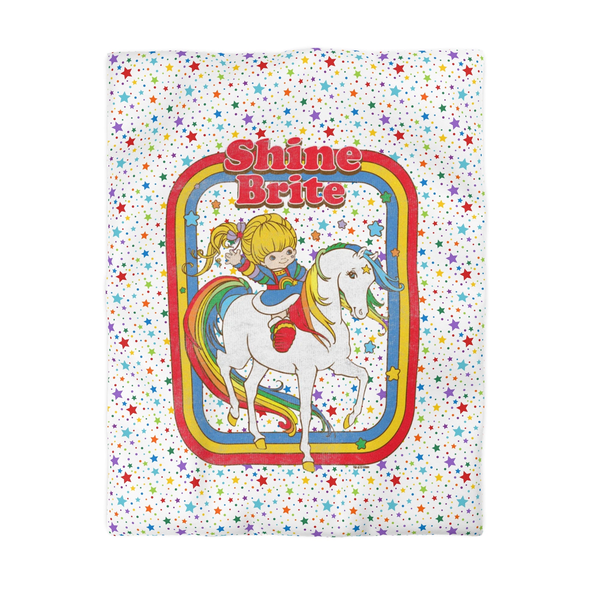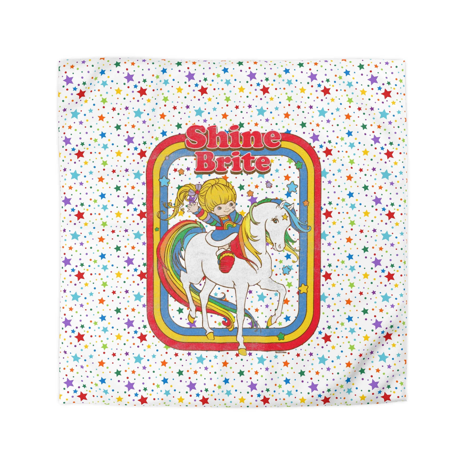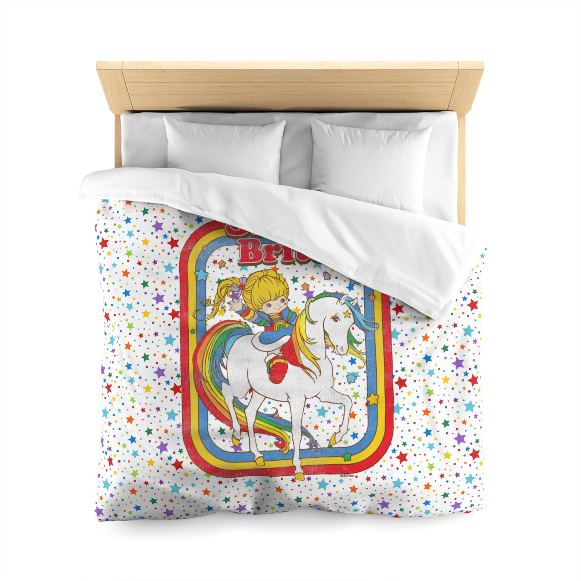 Rainbow Brite and Starlite Duvet Cover in microfiber fabric; perfect for those nostalgic for the 1980s or kids at heart. This duvet cover comes in three sizes and is a great gift for holidays or special occasions.