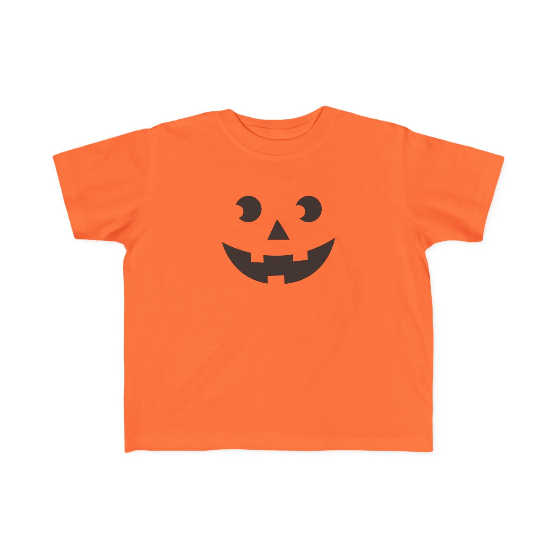 Dress your little ones in comfort and style with this charming toddler fine jersey tee. Perfect for playdates, family gatherings, or cozy days at home, this tee radiates a fun and cheerful vibe, making it a delightful addition to any child's wardrobe. It's ideal for toddlers who love to express their personality through fun designs while staying comfortable all day long. With Halloween around the corner, this bright orange shirt featuring a playful pumpkin face is a festive choice for celebrations, parties, and trick-or-treating. Also a great gift for birthdays or just because!