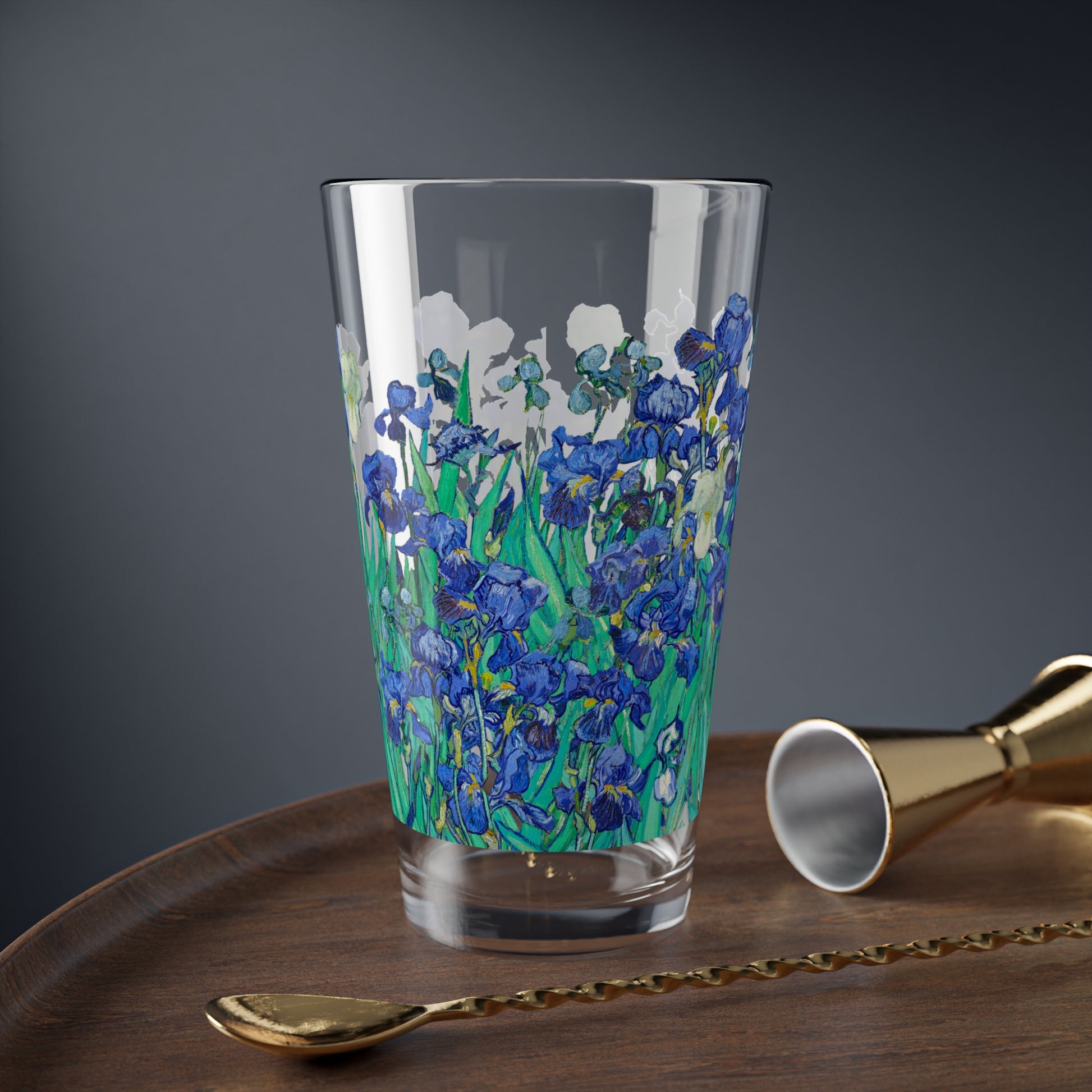 This 16 oz mixing glass is inspired by Van Gogh’s Irises (1889), making it the perfect gift for art lovers, gardeners, and those who love bright and quirky home decor. It can be used as an ordinary glass and as a shaker glass for making mixed drinks. The vibrant colors and durable construction make it suitable for everyday use.