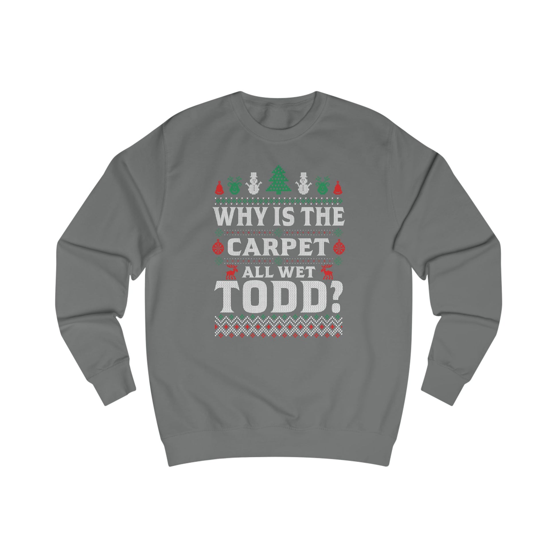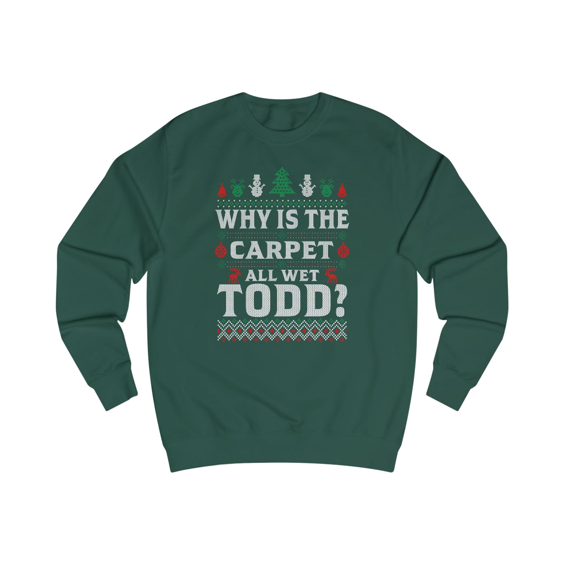 ‘Why Is The Carpet All Wet Todd?’ Ugly Christmas Sweater Crewneck